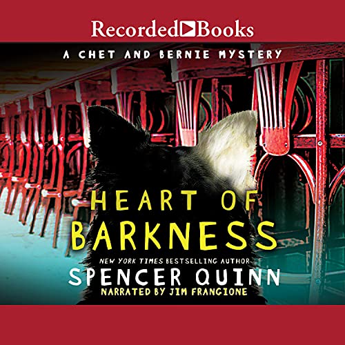 HEART OF BARKNESS features great writing in a great mystery story. And super fantastic narration by Jim Frangione to boot!! (He actually “makes” it the best.)Spencer Quinn has put country western music at the heart of this story plus a few mean hombres (perps) for Chet to chase, and a horse too this time. But the terrific man/dog duo takes care of all of them and rescues an aging country music singer in the process..